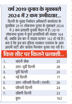 https://indianexpress.com/article/cities/delhi/20-joint-meets-daily-padyatras-aap-congress-scale-up-poll-campaign-in-delhi-9319335/Delhi: 162 candidates for 7 LS constituencies.