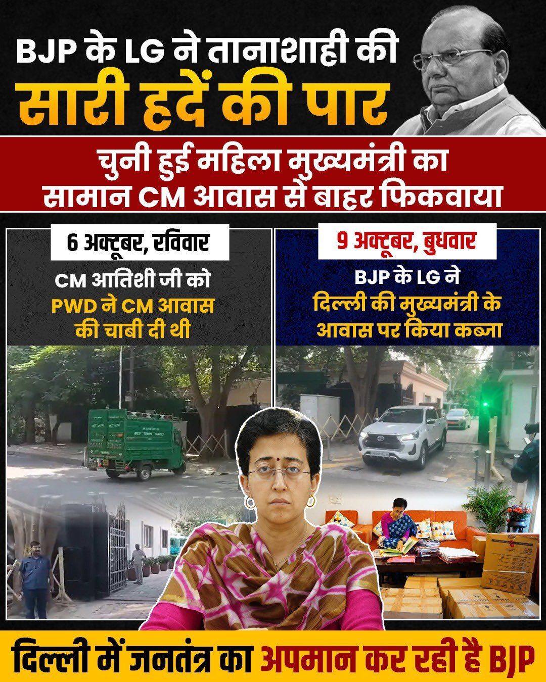 BJP's LG did not feel ashamed at all while getting a woman Chief Minister's belongings thrown out of the CM residence during the holy days of Navratri