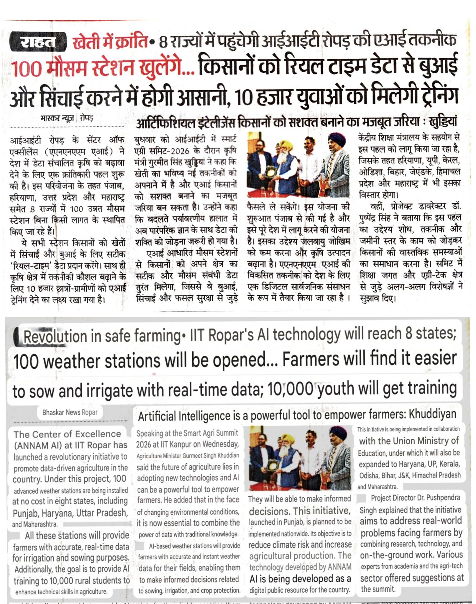 The IIT Ropar's AI technology will reach & 100 weather stations will open in states ,Farmers will find it easier to sow & irrigate with real-time data.