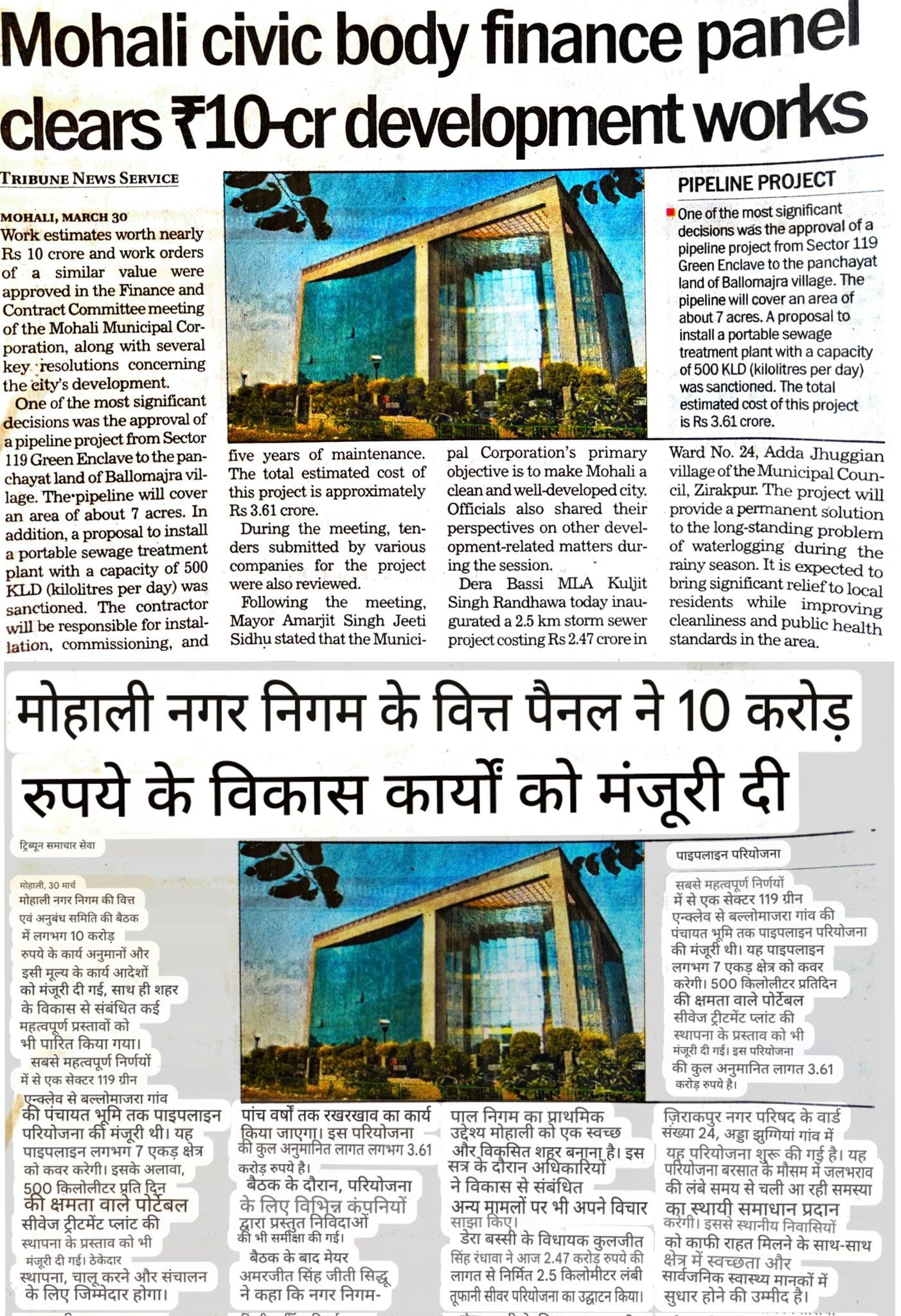 Mohali Civic Body Finance panel clears ₹10-crore Development works.