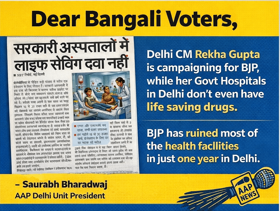 Delhi CM Rekha Gupta is campaigning for BJP, while her Govt Hospitals in Delhi don’t even have life saving drugs.