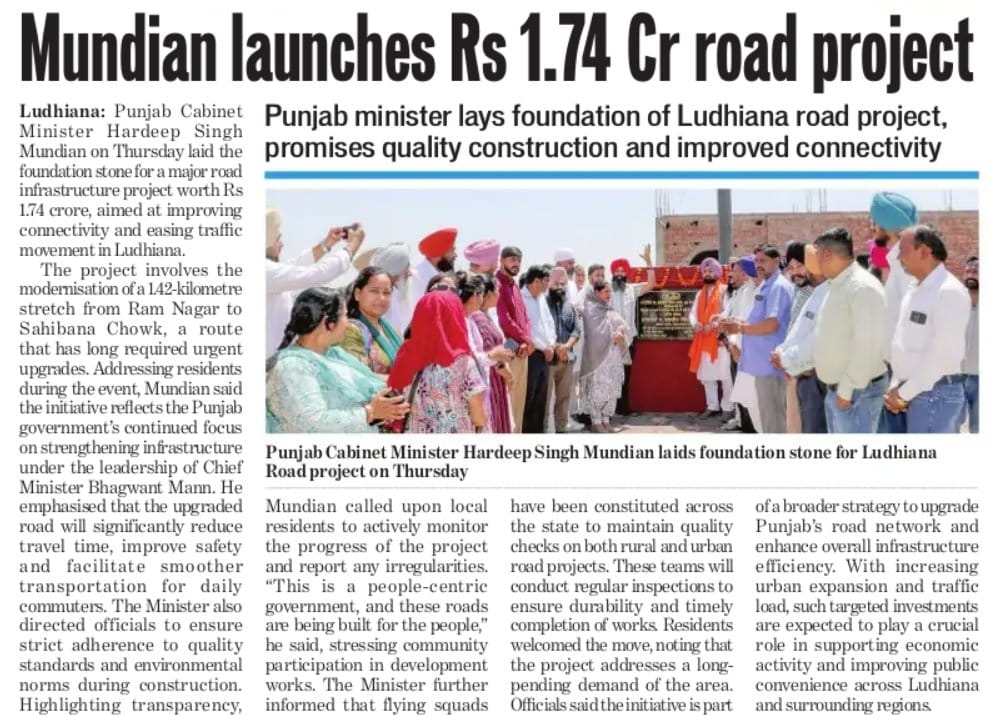 Mundian launches ₹1.74 crore road project - Lays foundation of Ludhiana road project.
