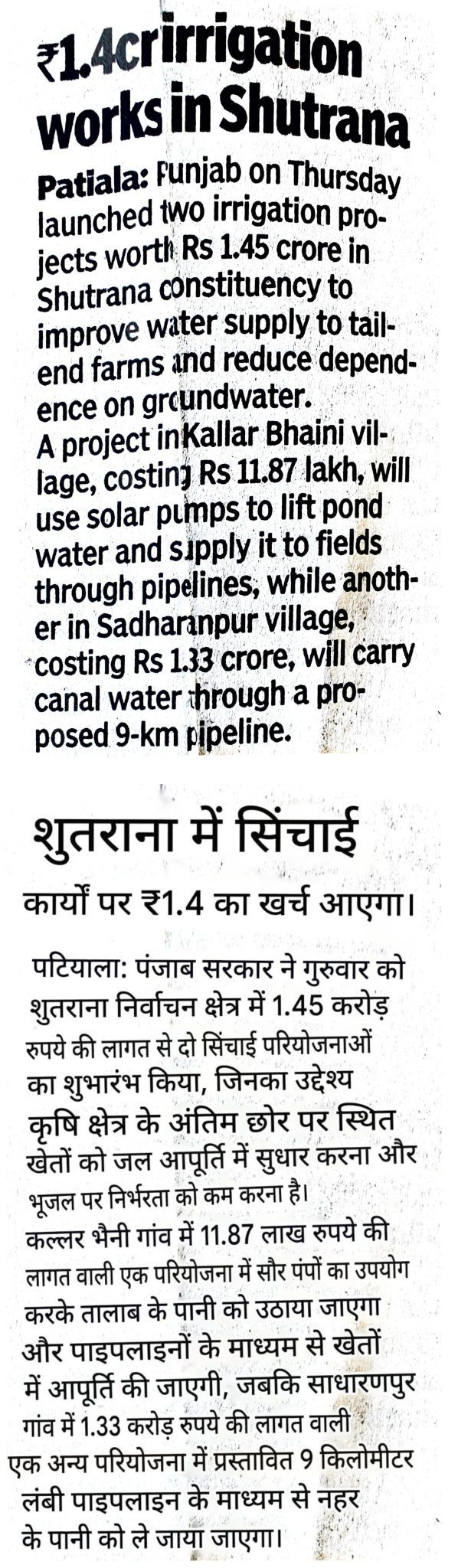 ₹1.4 crore irrigation works launched in Shutrana.