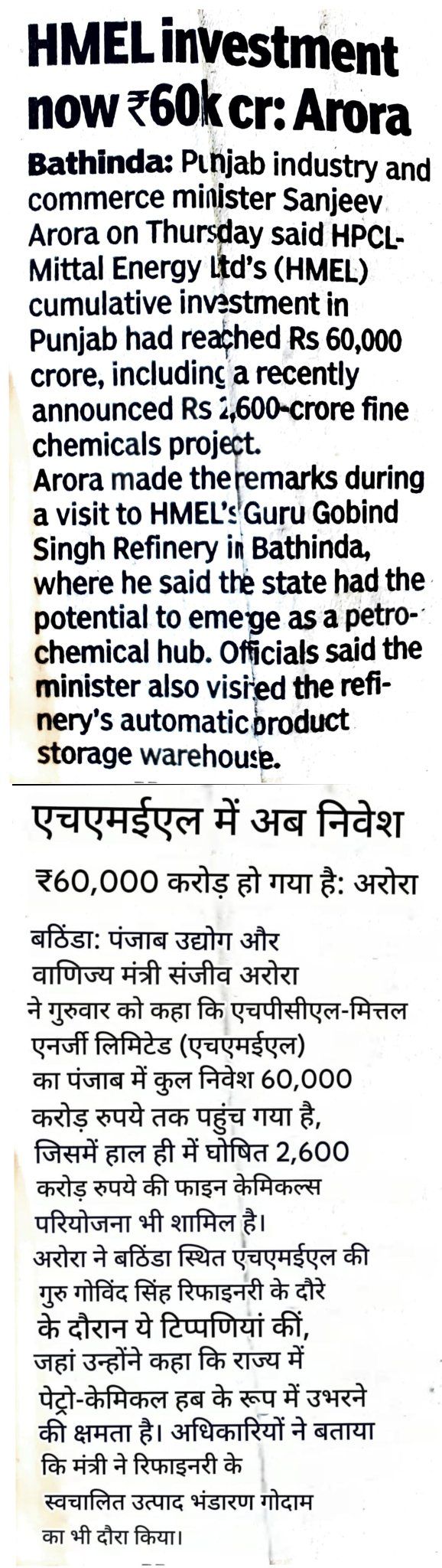 HMEL investment now ₹60K crore.