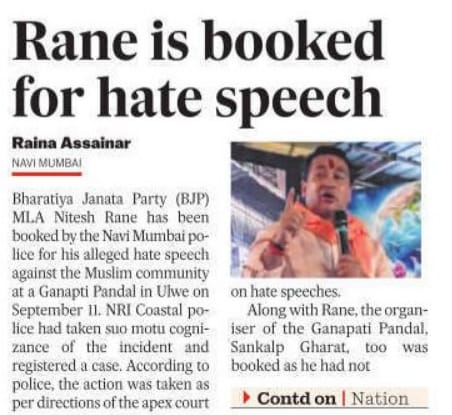 Bharatiya Janata Party MLA Nitesh Rane has been booked by the Navi Mumbai police for his alleged hate speech...