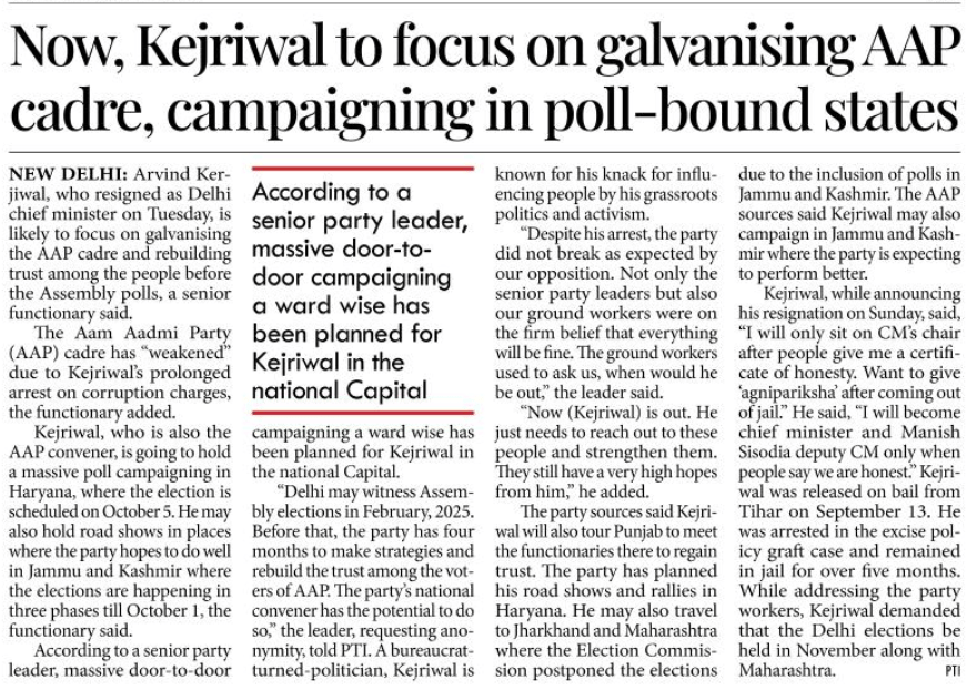 Arvind Kejriwal to focus on galvanising the AAP cadre, and campaigning in poll-bound states