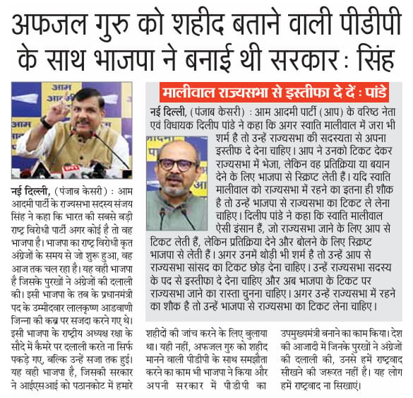 BJP had formed the government with PDP which called Afzal Guru a martyr: Sanjay Singh Maliwal should resign from Rajya Sabha: Dilip Pandey