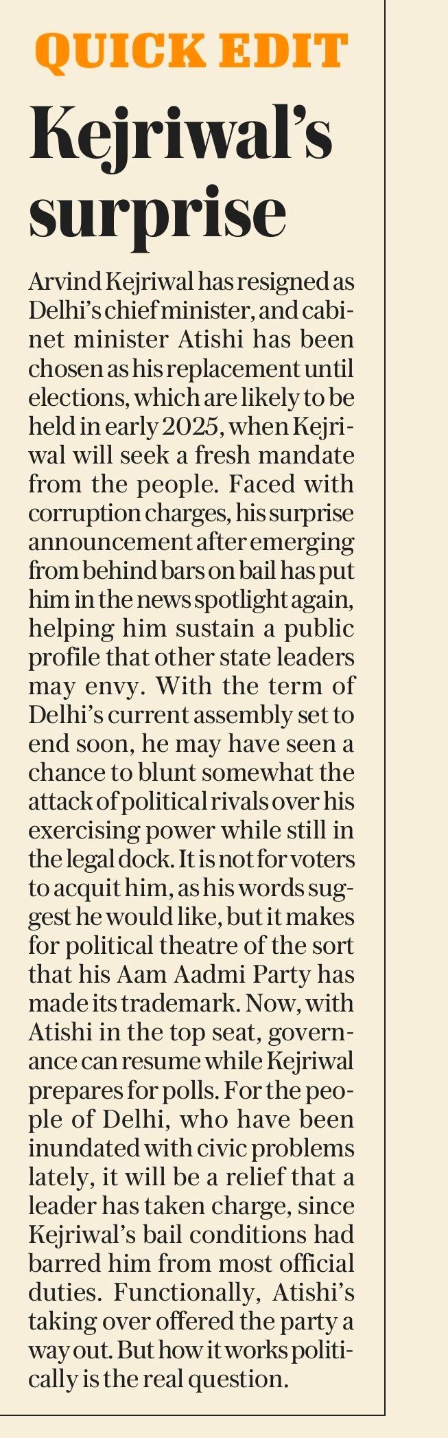 “Right after resigning, the first thing he (Kejriwal) said is that he will give up all the facilities given to the CM…he will vacate the CM residence…there is concern over his security as he has been attacked many times…we tried to convince him that your safety is under threat…BJP has tried to attack him…we tried to tell him that this house (CM residence) is crucial from the point of view of safety but he decided that God will protect him now…he said that he was jailed for six months, living amongst dangerous criminals but God protected him…” Singh said.