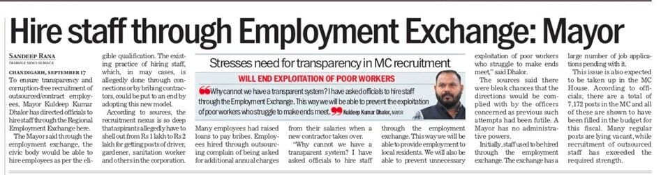 Hire staff through Employment Exchange: Chandigarh Mayor