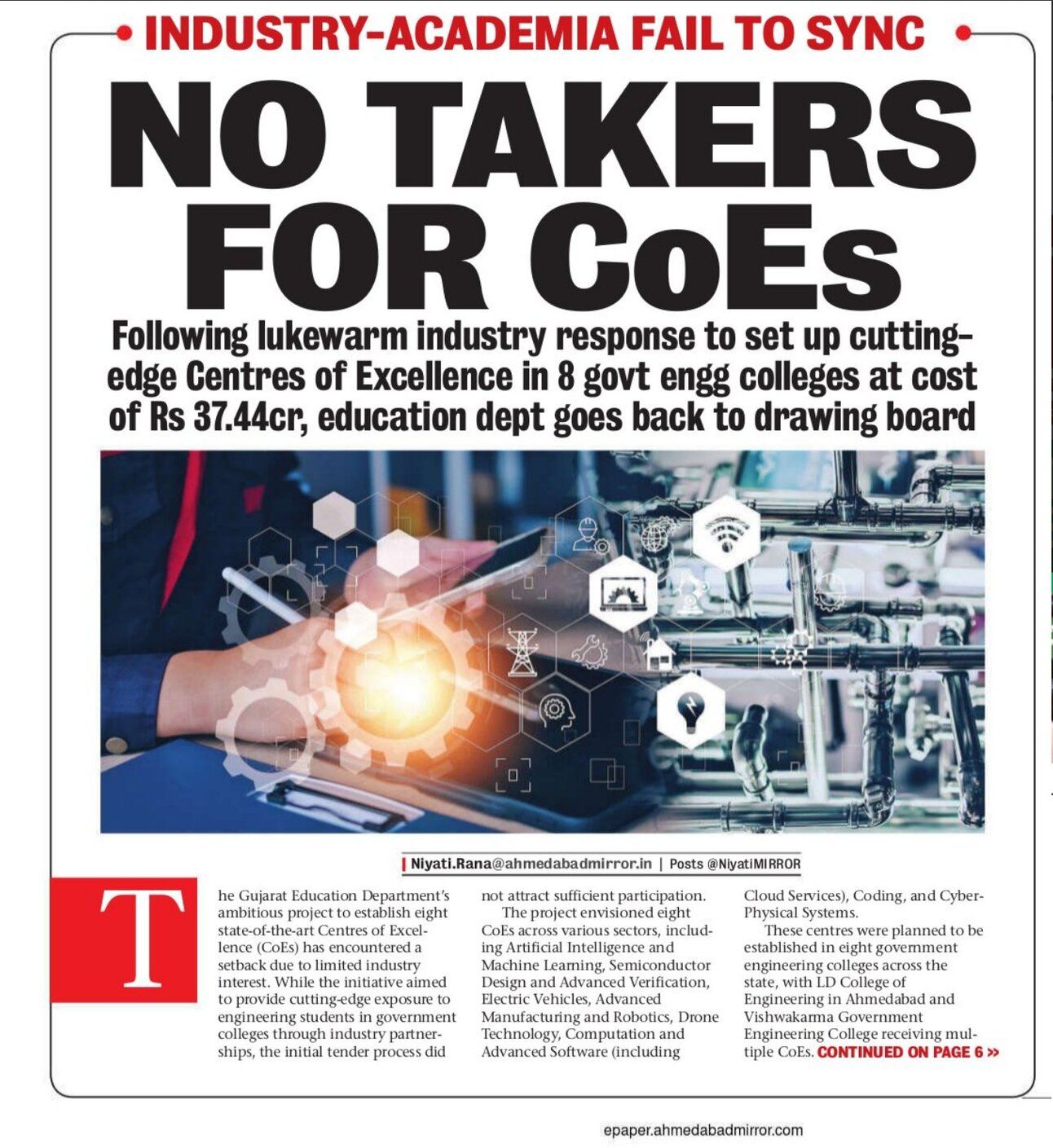 No takers for the Gujarat Education Dept's ambitious project to establish eight state-of-the-art Centres of Excellence