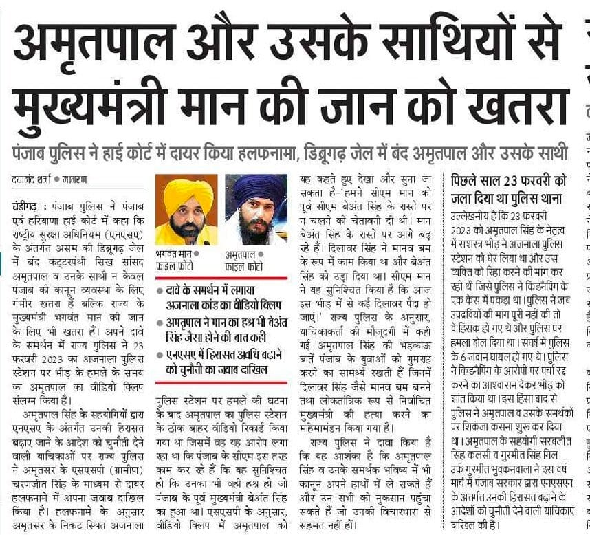 अमृतपाल और उसके साथियों से मुख्यमंत्री मान की जान को खतरा
