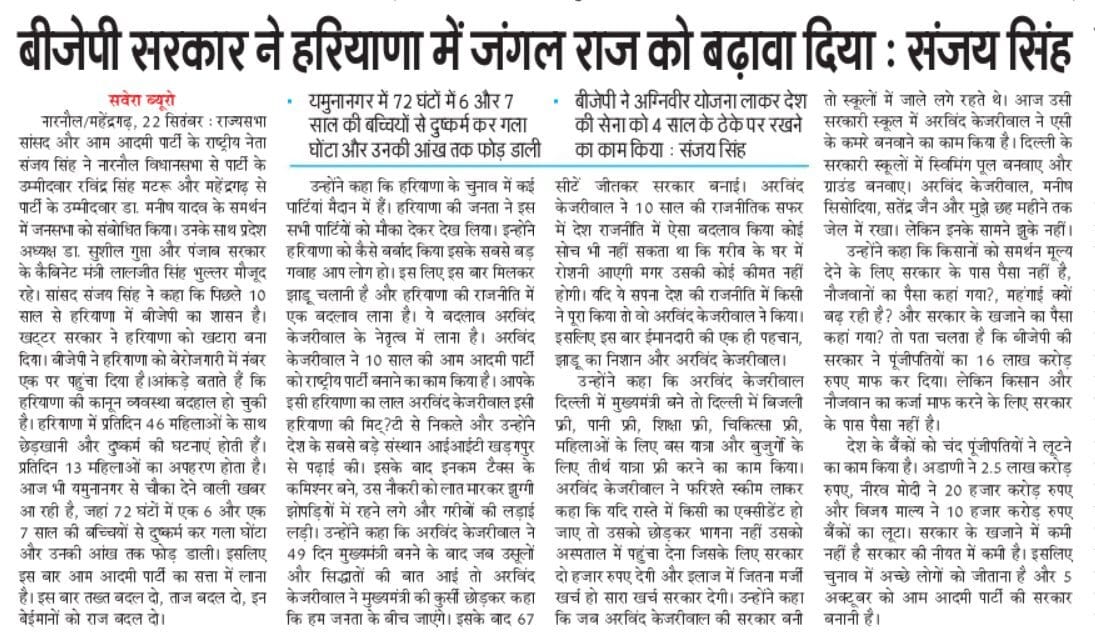 BJP government promoted jungle raj in Haryana: Sanjay Singh