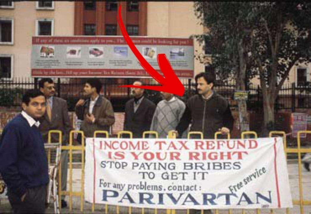 Arvind Kejriwal was then Joint Commissioner in Income Tax Dept. To stop corruption, he set-up NGO Parivartan, no one in his dept knew about this. Manish Sisodia as seen in this photo, used to create awareness and offer free services for tax refund.