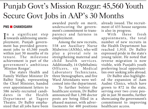 In a significant step towards addressing unemployment, Punjab government has provided government jobs to 45,560 youth within just 30 months of its tenure. The milestone achievement is part of the government's ambitious ‘Mission Rozgar’.