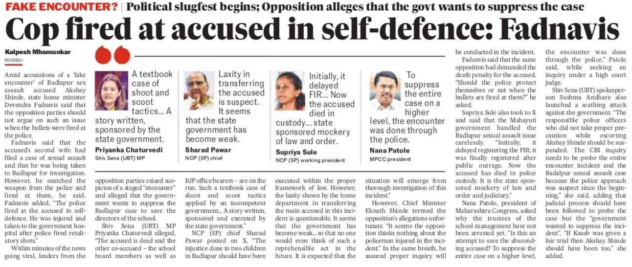 The accused in the minor girls' sexual assault case was killed in an encounter as the Eknath Shinde government was trying to shield the pro-BJP Badlapur school management, Shiv Sena (UBT) MP Sanjay Raut alleged on Tuesday.