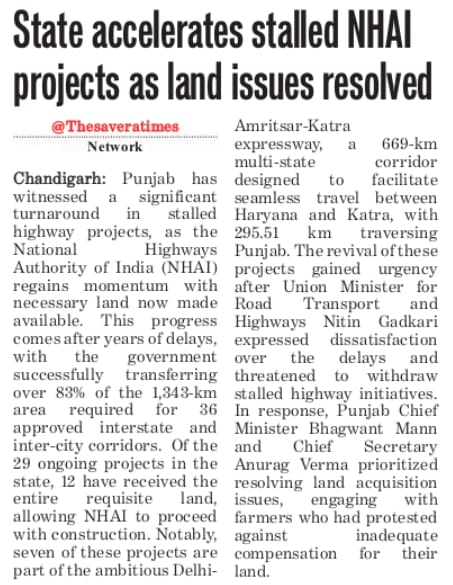 Punjab has witnessed a significant turnaround in stalled highway projects as the NHAI regains momentum with necessary land now available.Punjab has witnessed a significant turnaround in stalled highway projects as the NHAI regains momentum with necessary land now available.