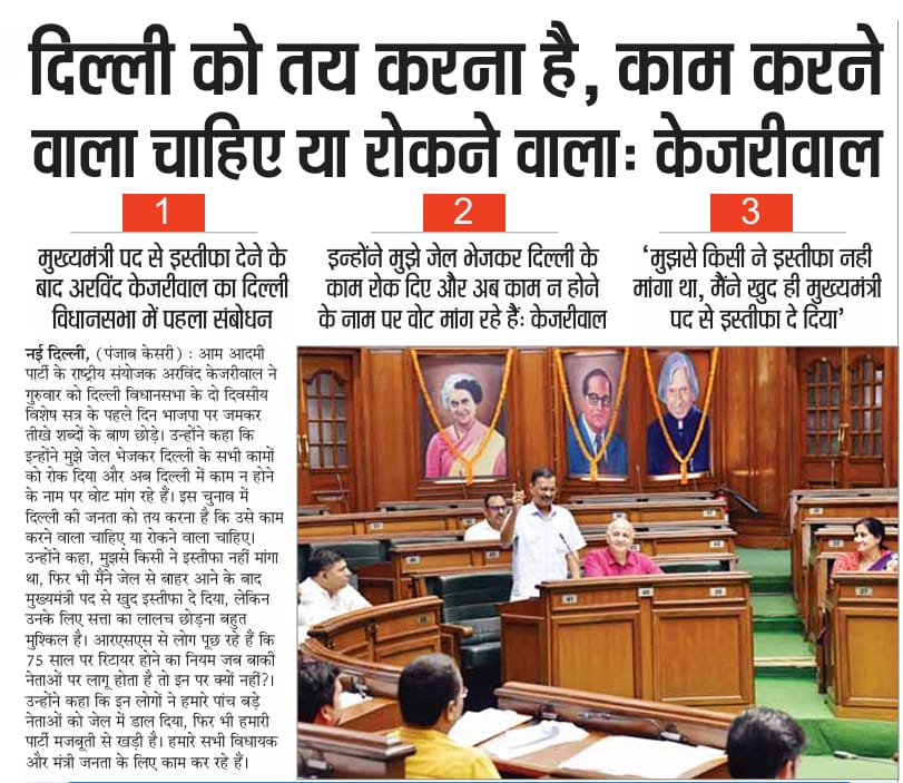 ) speaks at the Delhi Assembly."I always say Prime Minister Modi is very powerful and has a lot of resources, but Modi is not God. The God who is there is with us. I want to thank the Supreme Court." — Arvind Kejriwal in the Delhi Assembly