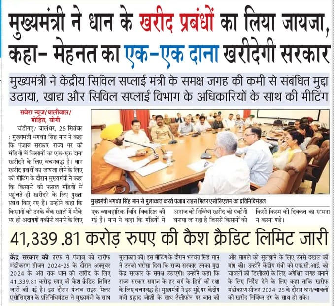 Chief Minister Bhagwant Mann took stock of the preparations related to paddy procurement. He said, "The government is committed to purchasing every grain of the farmers' hard work."