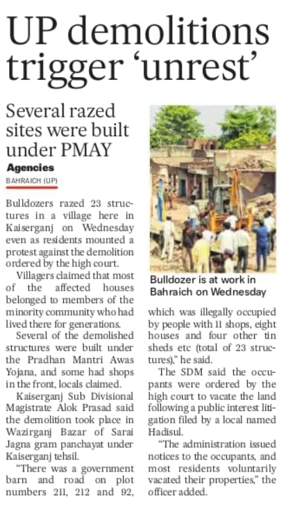 Several of the demolished structures in a village in Kaisarganj (UP) were built under the Pradhan Mantri Awas Yojna!