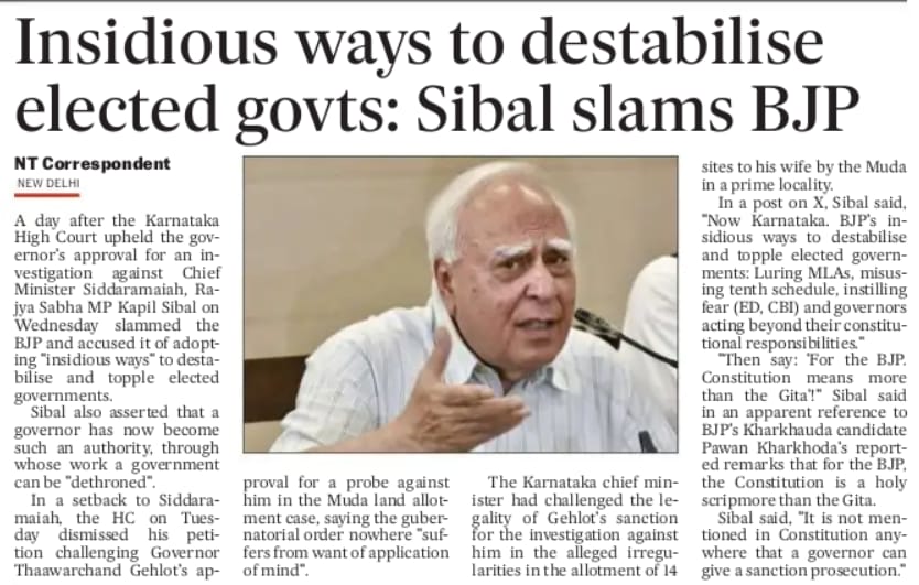 BJP's insidious ways to destabilise and topple elected governments: Luring MLAs, misusing tenth schedule, instilling fear (ED, CBI) and governors acting beyond their constitutional responsibilities": Kapil Sibal