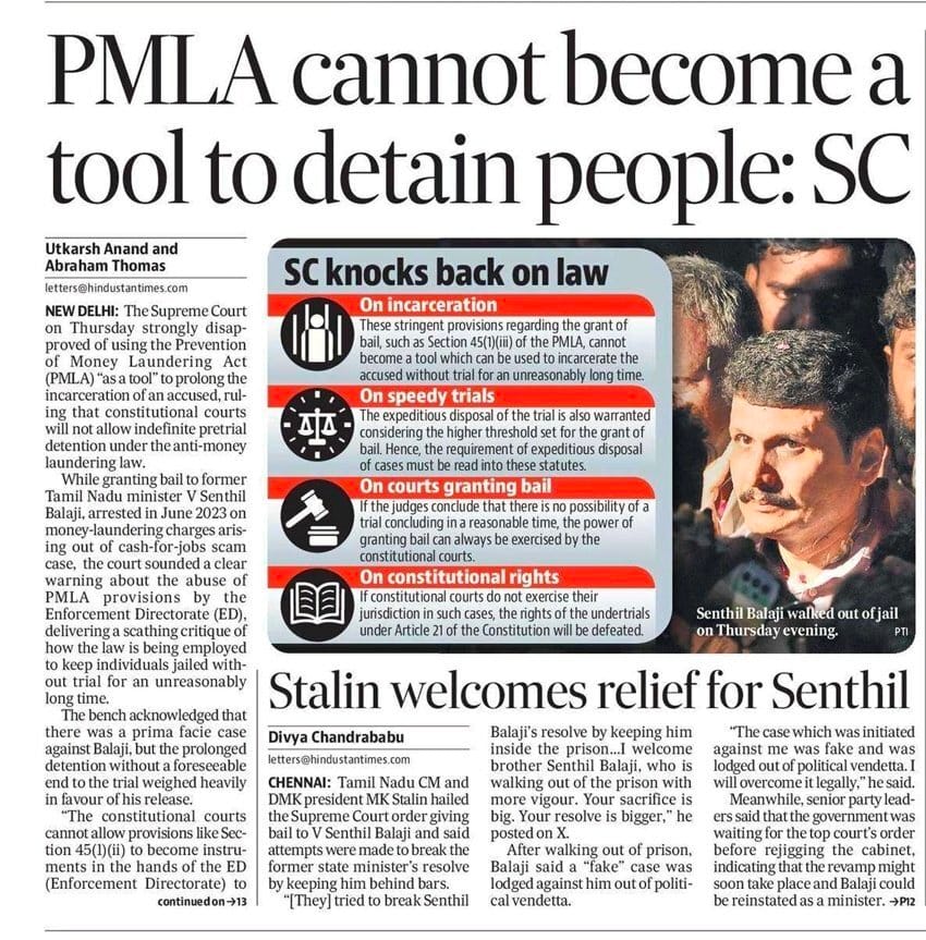 Strict bail standards and delay in trial cannot go together, says Supreme Court We will not let PMLA become a weapon of ED