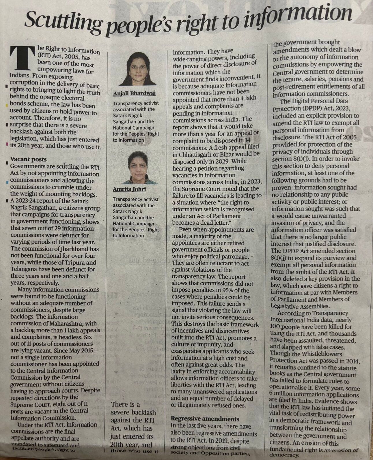 How the govts are scuttling the RTI Act. Don’t appoint Information Commissioners Appoint only govt acolytes who don’t want transparency Regressive amendments to RTI Act like blocking corruption info by protecting it as personal info Protecting goons who attack RTI activists.