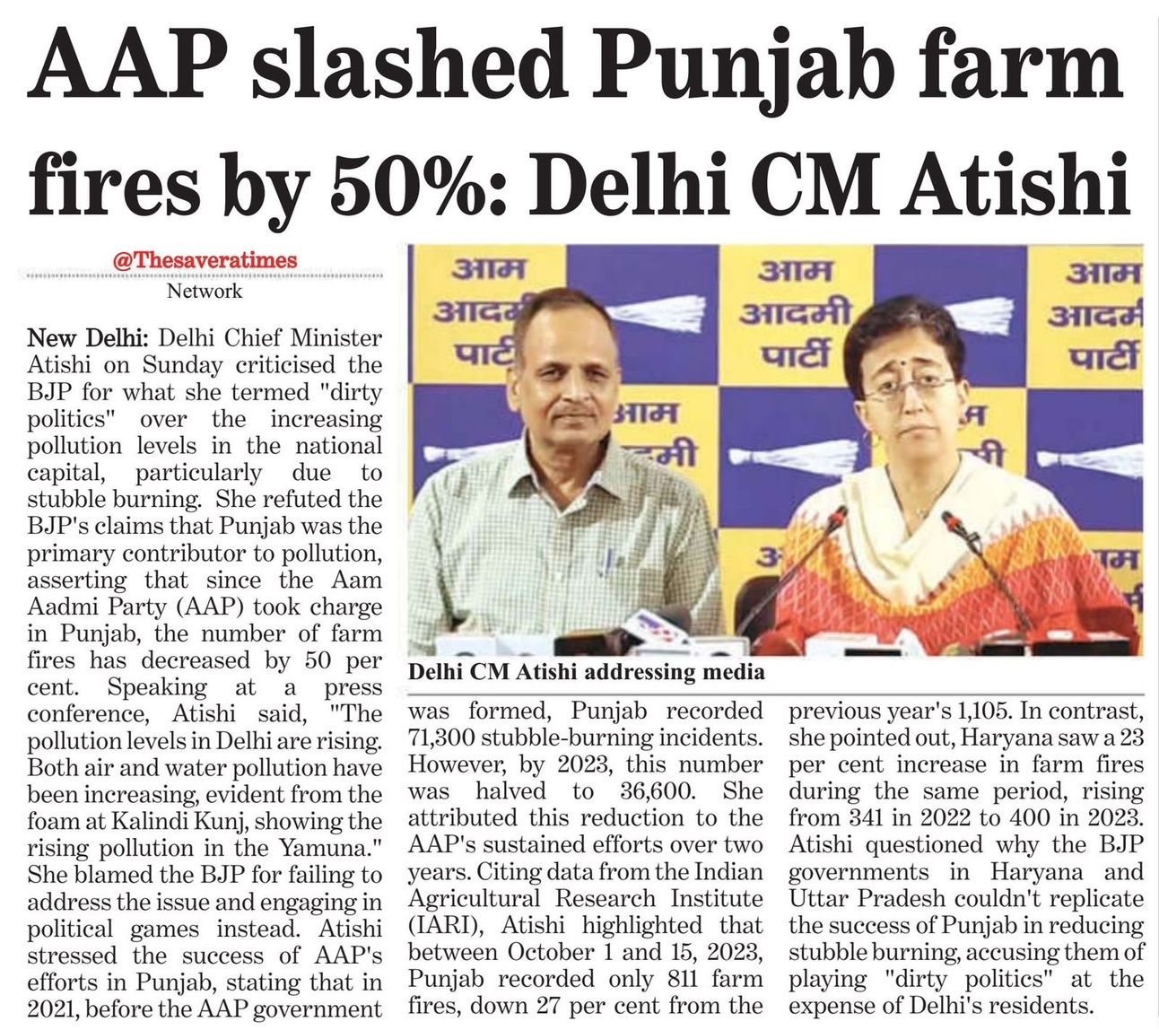Real Change: AAP has reduced Punjab’s farm fires by 50%! Delhi CM @AtishiAAP