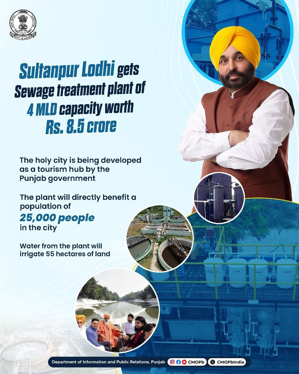 In a significant stride towards making a smart city, Punjab government has built a sewage treatment plant at the holy city of Sultanpur Lodhi. It will not only treat the water residue for over 25000 population of the city, but also treat the water to be used for irrigation in 55 acres. State govt will ensure the holistic development of the holy city.