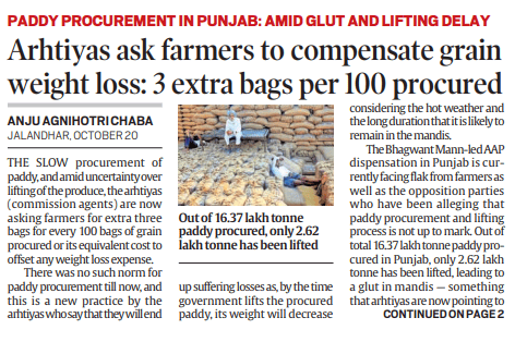 Slow procurement of paddy "mess", has a new facet to deal with; arhtiyas (commission agents) r asking farmers for extra 3 bags for every 100 bags of grain procured or its equivalent cost to offset any weight loss expense. #Punjab As usual the Ultimate loser is the Farmer, always