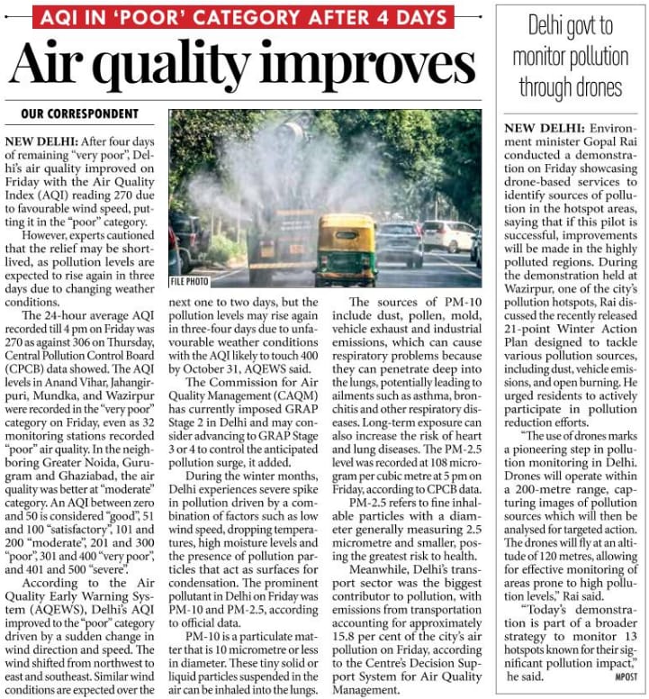 Delhi's air quality improves to 'poor' Environment Minister Gopal Rai conducted a demonstration on Friday showcasing drone-based services to identify sources of pollution in the hotspot areas. If this is successful, improvements will be made in the highly polluted regions.