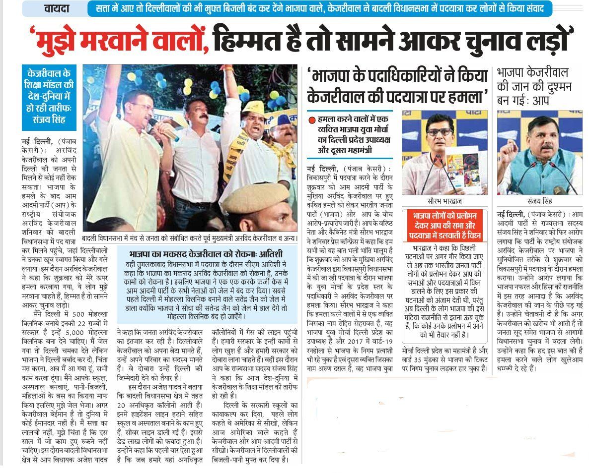 People affiliated with the BJP tried to attack Arvind Kejriwal, a Z-plus protectee, during his padayatra in West Delhi's Vikaspuri