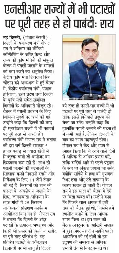 There should be a complete ban on firecrackers in NCR states as well: Gopal Rai