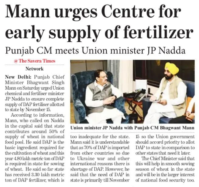 The BJP leadership is working hard against the farmers and the AAP governments in Delhi and Punjab. CM Bhagwant Mann urges the Centre for an early supply of fertilizer