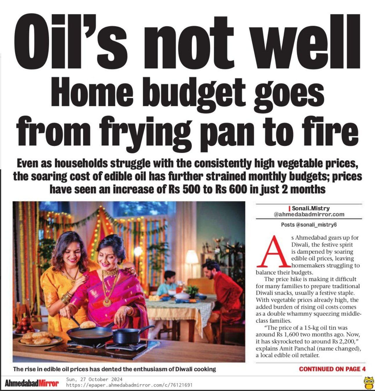 Gujarat: "Cottonseed il, groundnut oil, palm olein oil and other refined oils have all seen an increase of ₹500 to ₹600 in the past two months."