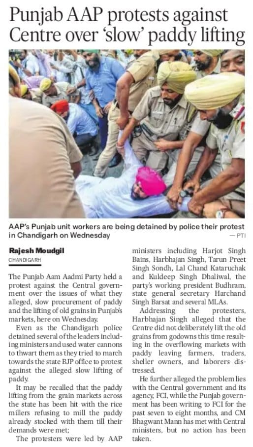 AAP's Punjab protected against the Centre for slow lifting of paddy