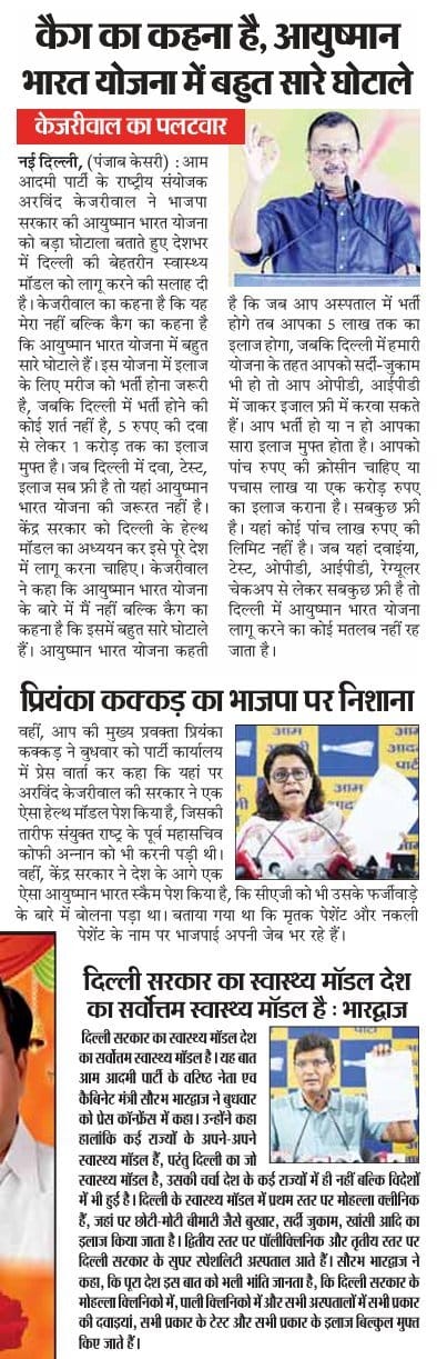 Gurugram, Noida and Ghaziabad are full of big private hospitals, but still why are people from Uttar Pradesh and Haryana coming to Delhi to get their surgery done? BJP CMs of UP and Haryana should tell how many poor people have undergone surgery in these big hospitals under Ayushman Bharat Yojana? People from these states come to Delhi for surgery because the Ayushman Bharat scheme exists only on paper.