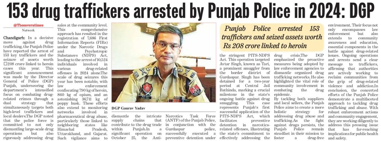 Punjab Police arrested 153 traffickers and seized assets worth ₹208 crore linked to heroin in 2024