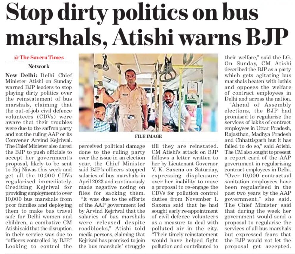 BJP is just doing dirty politics in the name of marshals. I will send a proposal to LG in a week; regularize them. The government is in favour of getting their salary paid and permanent appointments. Arvind Kejriwal has written letters to LG many times. — CM Atishi