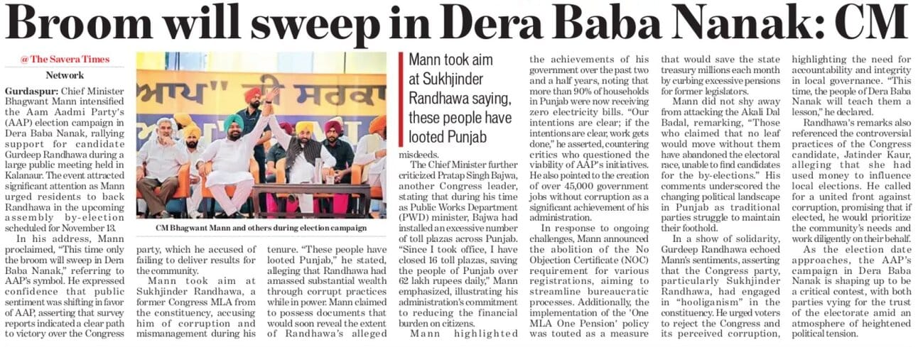 CM Bhagwant Mann intensifies the AAP election campaign in Dera Baba Nanak