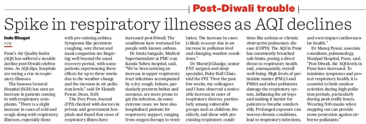 Pune: Spike in respiratory illnesses as AQI declines - Post-Diwali trouble