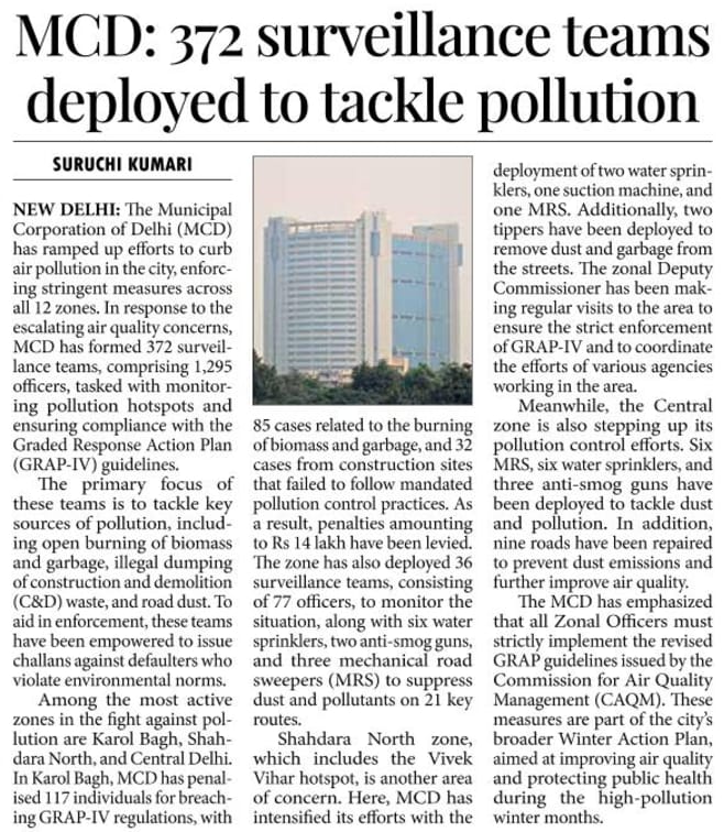 The Municipal Corporation of Delhi has ramped up efforts to curb air pollution - 372 surveillance teams deployed