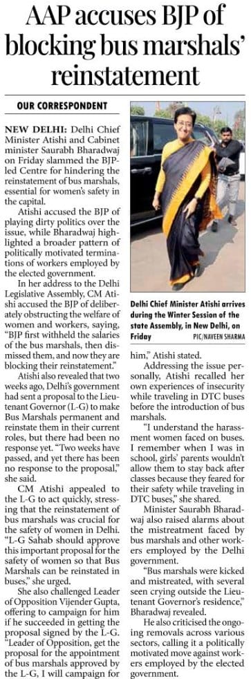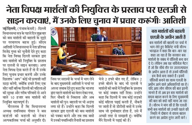 Atishi told in Delhi Assembly -If Vijyender Gupta Ji [ LOP] gets the Bus Marshalls reinstated, I shall request my Party not to put up a Candidate against you in Rohini seat. O shall canvass for you. For AAP, Seat is not important. 10,000 Bus Marshalls jobs are”.