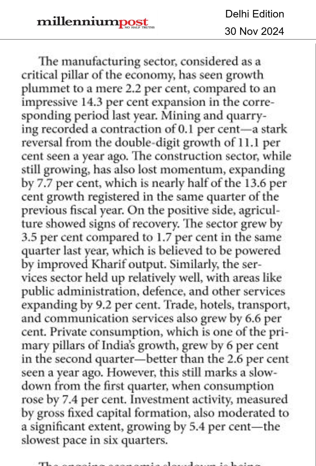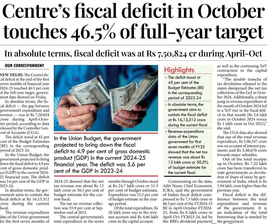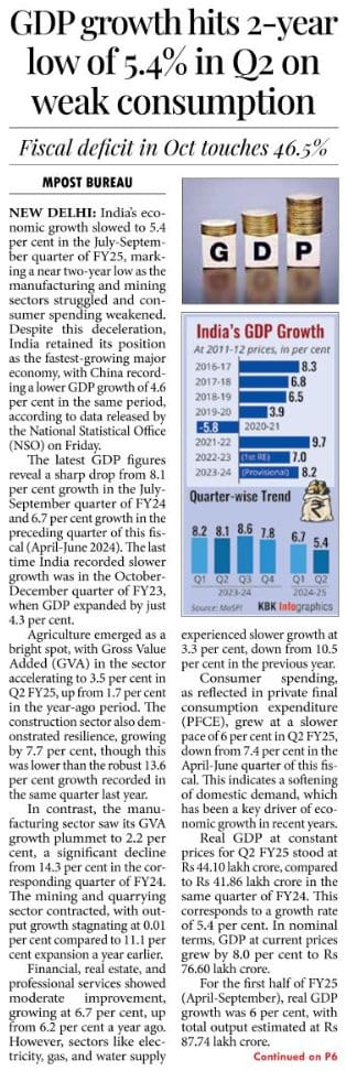 GDP growth hits a 2-year low of 5.4% in quarter 2 on weak consumption The fiscal deficit in October touches 46.5%