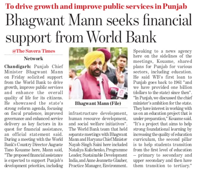 Bhagwant Mann seeks financial support from the World Bank to drive growth and improve public services in Punjab.