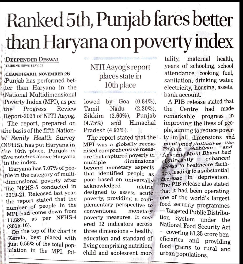 Pb fares better than Haryana on poverty index