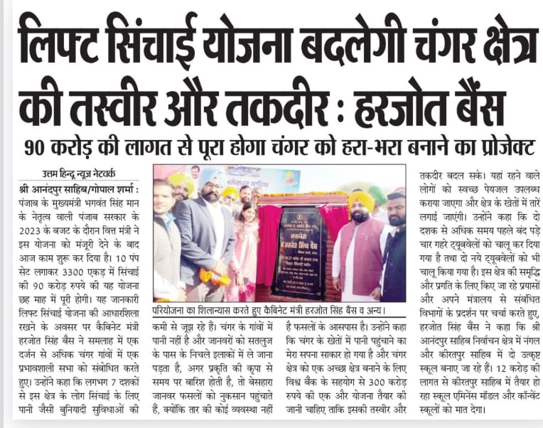 The lift irrigation scheme will change the image and fate of the Changar area. The project to make Changar green will be completed at a cost of ₹90 crore.