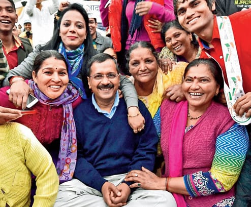 #DelhiElections Kejriwal engages with Volunteers.