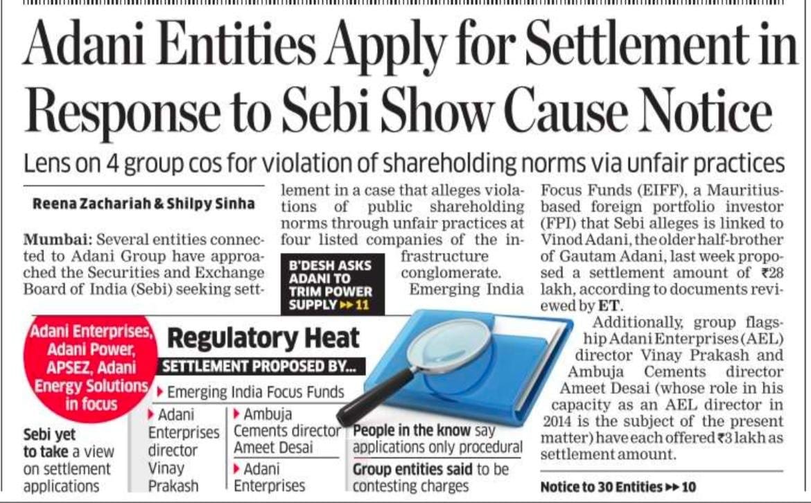 #AdaniScandal Essentially the charges of manipulating shareholding norms by using a Mauritius-based FPI, linked to Vinod Adani seem to have been accepted.