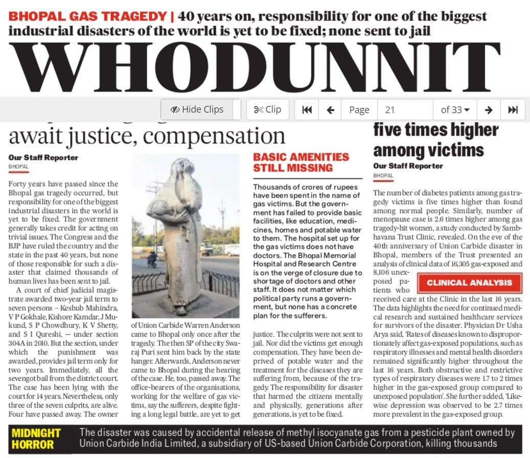 #BhopalGasTragedy Bhopal Gas Tragedy: 40 years on, responsibility for one of the biggest industrial disasters of the world is yet to be fixed; none sent to jail.