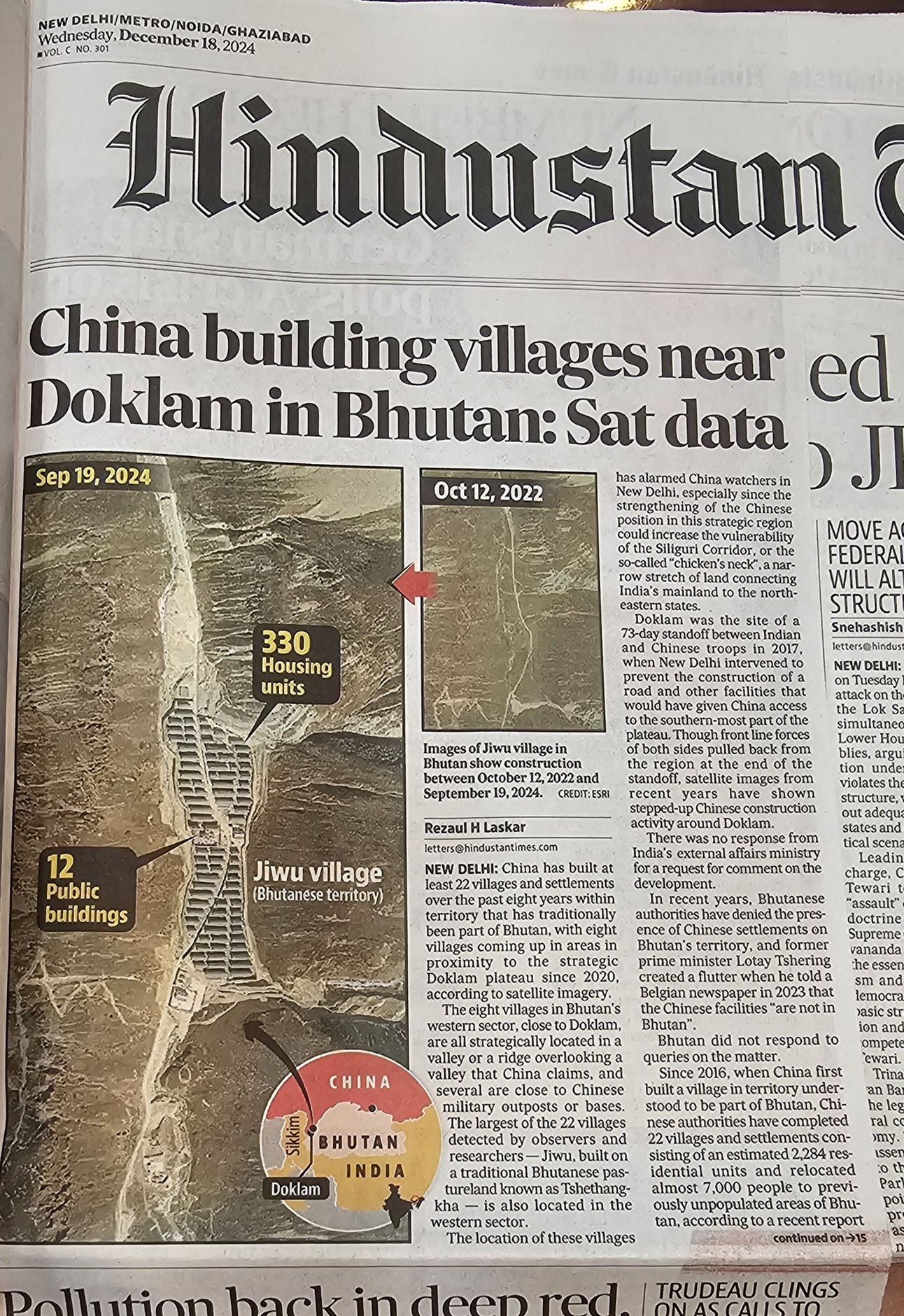 Lead news today that China has occupied over 800sqkm of Bhutan territory. India's Indian Military Training Team (IMTRAT) is responsible for Bhutan's territorial integrity against China. Based in west Bhutan, IMTRAT with 2000 combat soldiers is meant to build up to a division (12,000 troops) to assist Bhutan. Since Modi gov has failed to evict PLA from own territory in east Ladakh, Thimphu cannot except Indian military to help Bhutan against China. So, Bhutan will soon resolve its border dispute (tech evaluation for which is done) with China, & we shall witness our IMTRAT coming back from Bhutan after 1963.